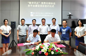 近日,公司举行“数字天正”信息化综合业务平台建设项目签约仪式。公司总经理万军、副总经理严和钦、总经理助理沈宇以及信息技术部相关人员,上海普华科技发展有限公司总经理、副总经理和项目经理等参加了签约仪式。