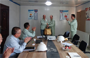 在与我司项目总承包现场团队成员以及华建监理现场团队成员的座谈会上,盛跃星书记代表中化蓝天集团向我司项目现场管理、监理人员表示亲切的慰问,充分肯定我司项目现场管理人员、监理人员的辛勤付出和展现的工作业绩。盛书记在讲话中谈到,在与业主方领导的沟通交流后,充分感受到我司现场人员勤奋、努力、踏实的工作作风,全体同事发扬不怕苦、不怕累的精神,以积极乐观的工作态度、专业敬业的工作精神,克服现场艰苦条件所带来的种种不利因素,积极认真的开展工程总承包管理和工程监理工作,赢得业主好评,在公司内部树立了积极努力、拼搏向上的工作典范。盛书记还就现场工作检查中发现的一些问题给予了指导并提出工作要求。