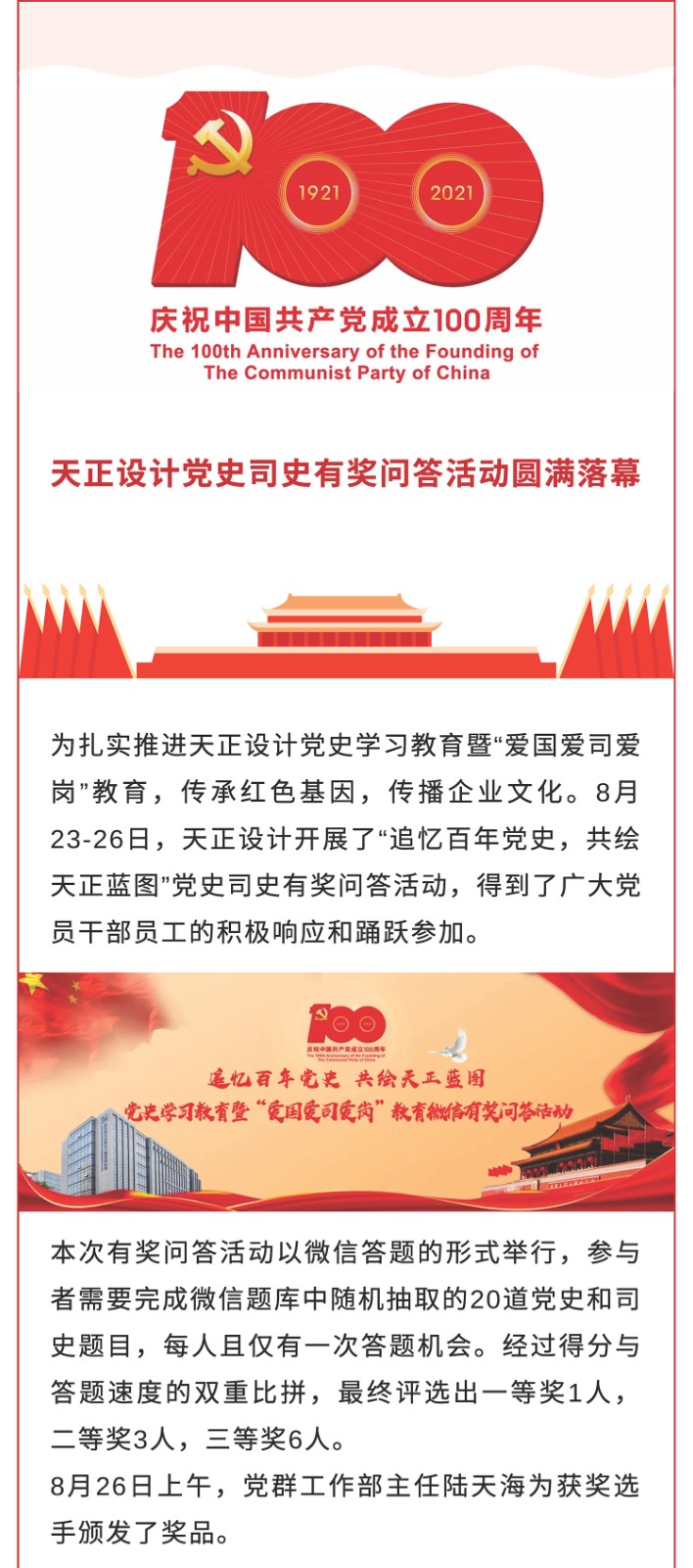 天正设计党史司史有奖问答活动圆满落幕