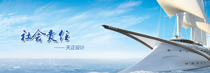 作为一家有社会责任感的企业,天正设计积极参与并支持社会公益事业,努力承担社会责任。多次组织员工参加“学雷锋,为民服务”,“扶贫建校、捐赠希望工程、建希望书库”等活动,近年来公司又先后参加了杭州市春风行动、为汶川、玉树灾区捐款等。2009年公司作为杭州市社会责任建设先进企业获市委、市政府表彰。